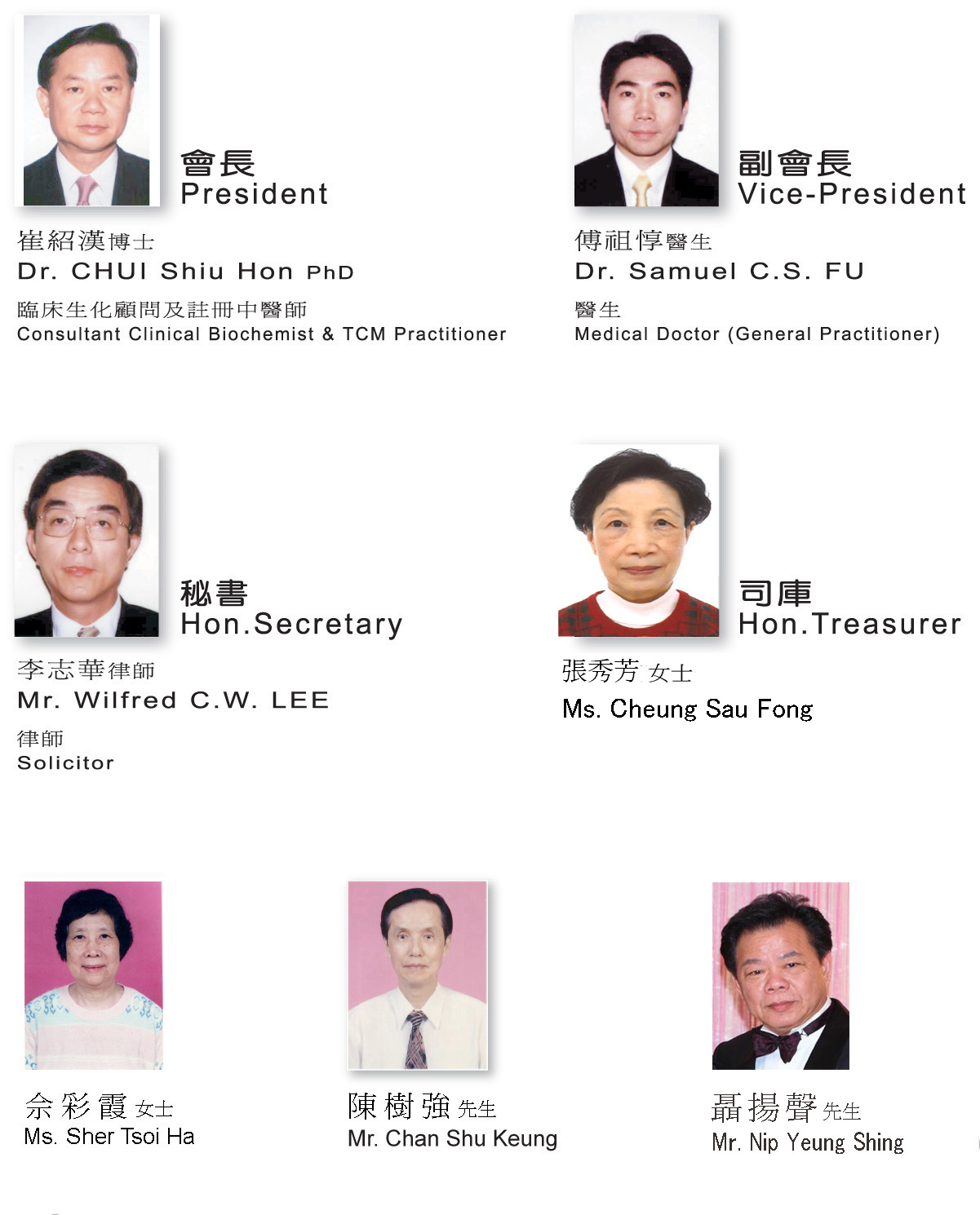 理事局: 由2至10名普通/永久會員組成,分永久理事及普通理事兩種。協會的創辦人崔紹漢博士及傅祖惇醫生為永久理事,其他理事局成員為普通理事,必須為協會的普通或永久會員,並由會員大會選出。 理事局負責一切有關的決策,並可成立執行委員會及附屬委員會去組織及推行一切活動。